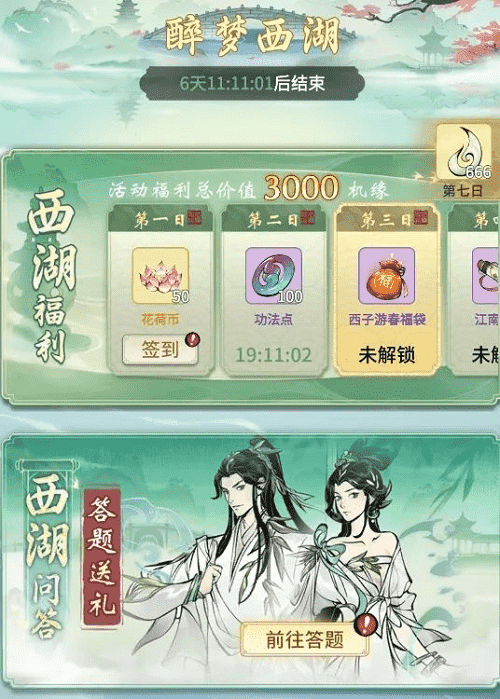 烟雨江南,,,,西湖三月,,,宛若人间仙境,,,,正是如此,,,,修真界方才与之连通,,,共享两处风光。。。此番《一念逍遥》联动西湖景区,,,,西湖十景被“搬”进游戏中,,仙友在游春过程中,,即可观赏到西湖奇景。。。。每日前往签到、、、参与游湖活动、、、、进行莲鲤祈愿,,,,皆可获得奖励馈赠,,,在这烂漫春日里,,,,赏景、、修行两不相误。。