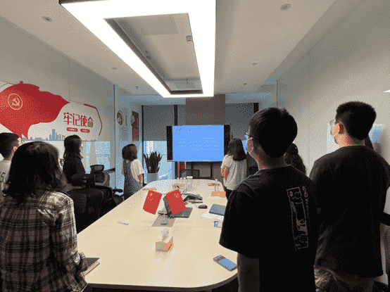而后,,,,全体党员一起重新学习了解了目前的入党流程要求,,,,各支部也将在后续工作中进一步发挥支部职能,,,,做好发展党员工作。。。最后,,全体党员面向党旗,,重温入党誓词。。。
