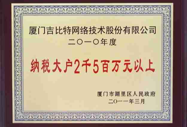 日前,,,公司被厦门市湖里区人民政府授予了“2010年纳税大户”的荣誉称号,,,充分体现了公司一贯合法纳税、、、诚信经营的良好企业社会公民行为。。